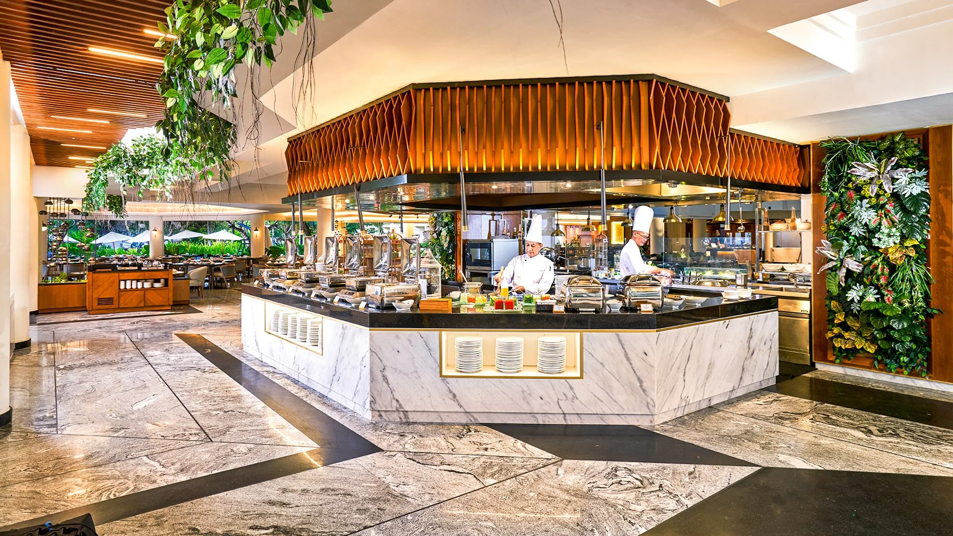 - •5 à la carte restorani: Ibu Kitchen – Indoneesia köök, Mahi-Mahi – Aasia köök, Jukung Grill rannas – kala ja mereannid, Bumbu Delhi – India köök, Chopstick – Hiina köök