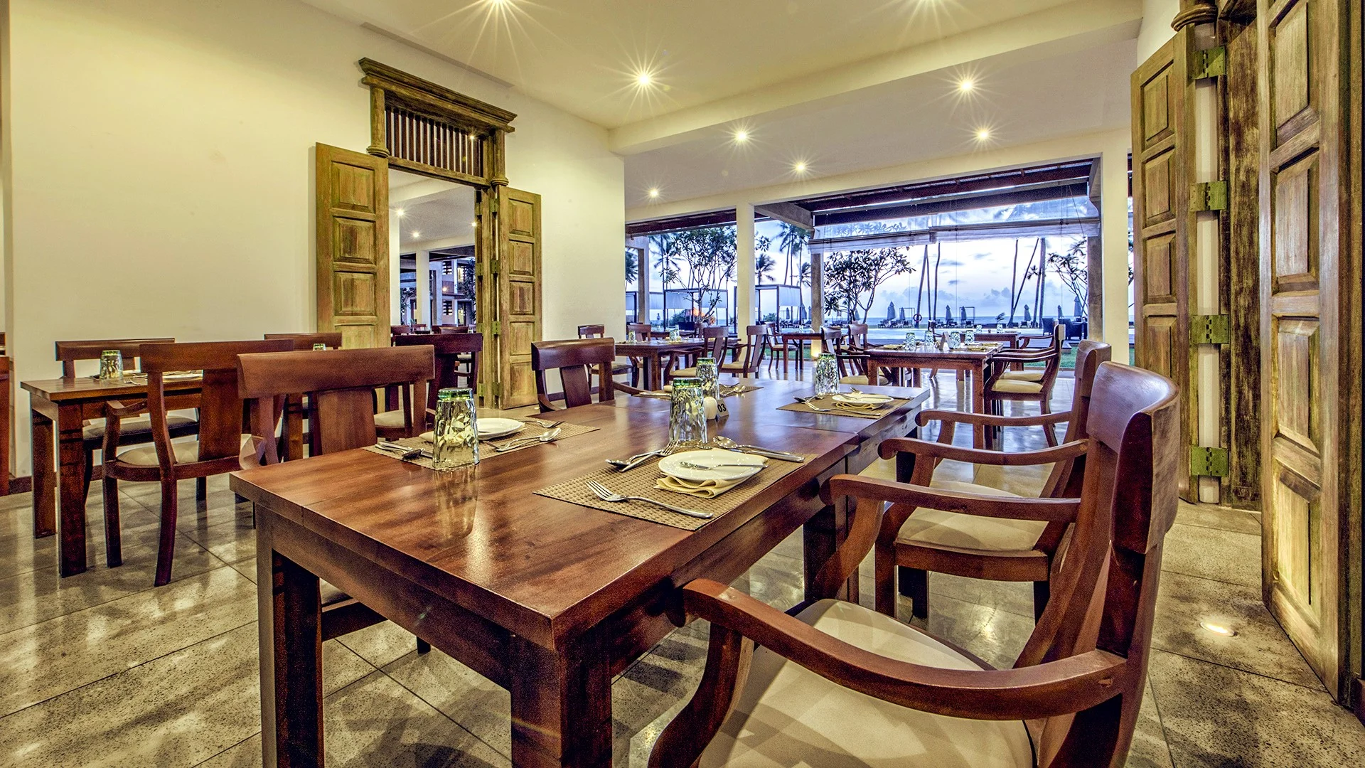 • restoran – toidud serveeritakse ka à la carte, kohalik ja rahvusvaheline köök, temaatilised õhtud, restoranis pakutakse taimetoite (soovi korral)